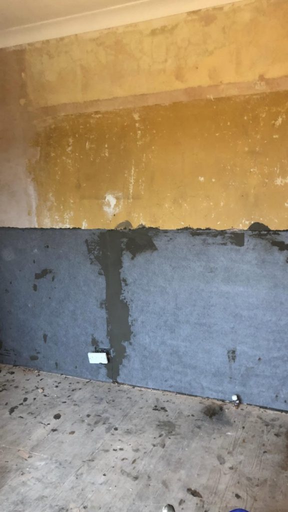 Our technicians are currently treating a property for rising damp in the Hope Valley, Derbyshire. The depth of the original internal plaster is too thin to allow us to use our standard membrane system and so we are using Drybase Flex by Safeguard. This is a watertight low-profile sheet membrane comprising a polypropylene sheet with a fleeced surface on both sides. Once the membrane has been installed we will apply plaster directly to it and our client will be able to decorate as soon as the plaster has dried. This work comes with our own 10 year guarantee as standard and we are also able to offer guarantee protection insurance for extra peace of mind.
